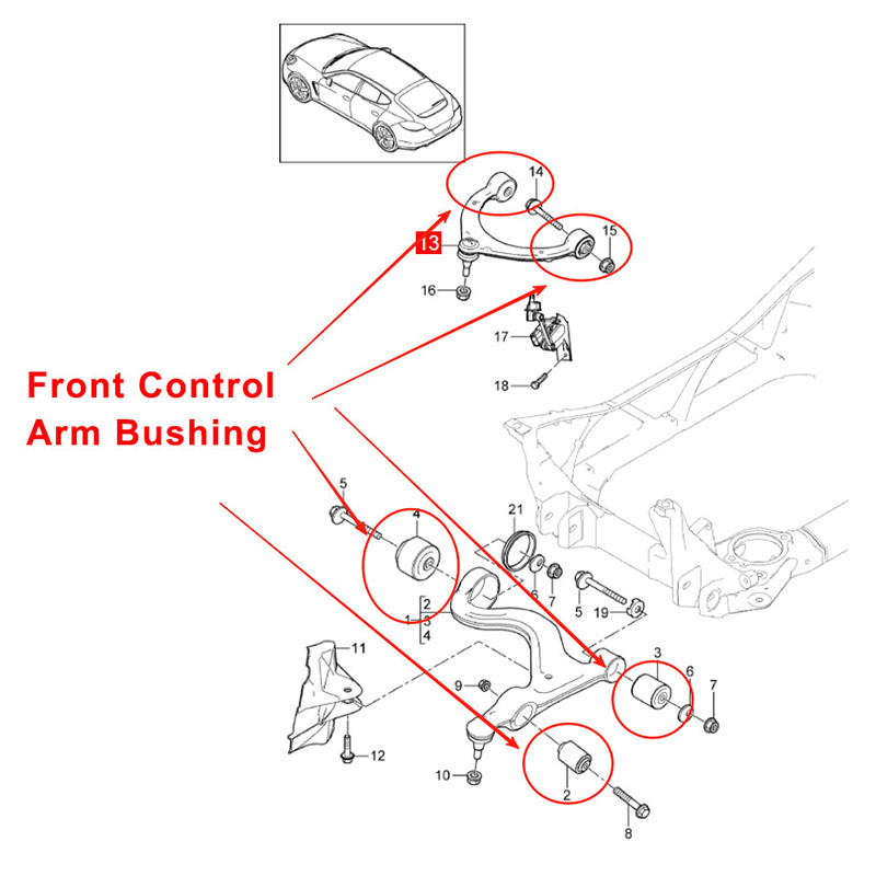 Tuno メーカー中国工場供給ポルシェ パナメーラ 2014-2016 フロント上部および下部コントロール アーム ブッシュ キット、OE 97034105122 は、中期サービスに入るパナメーラ モデル向けに設計された完全なフロント サスペンション メンテナンス キットです。の キットには車両あたり 10 個のブッシュが含まれており、自動車のシャーシのメンテナンスや大量調達に適しています。 アフターマーケット。